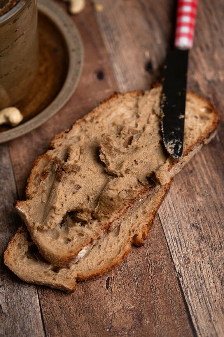 Essayez mon pâté vegan aux champignons et noix de cajou, une alternative crémeuse aux pâtés traditionnels.