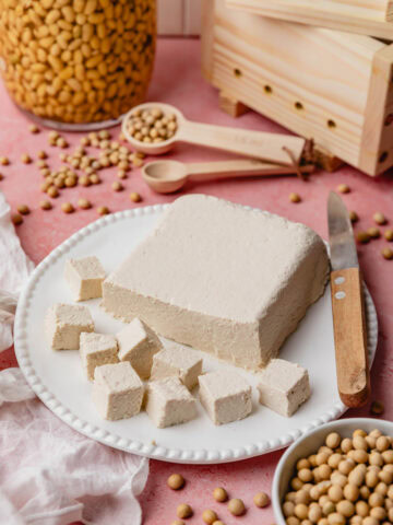 Voici les ingrédients principaux dont vous aurez besoin pour préparer votre tofu maison. Vous pouvez retrouvez la recette détaillée dans la fiche recette ci-dessous.